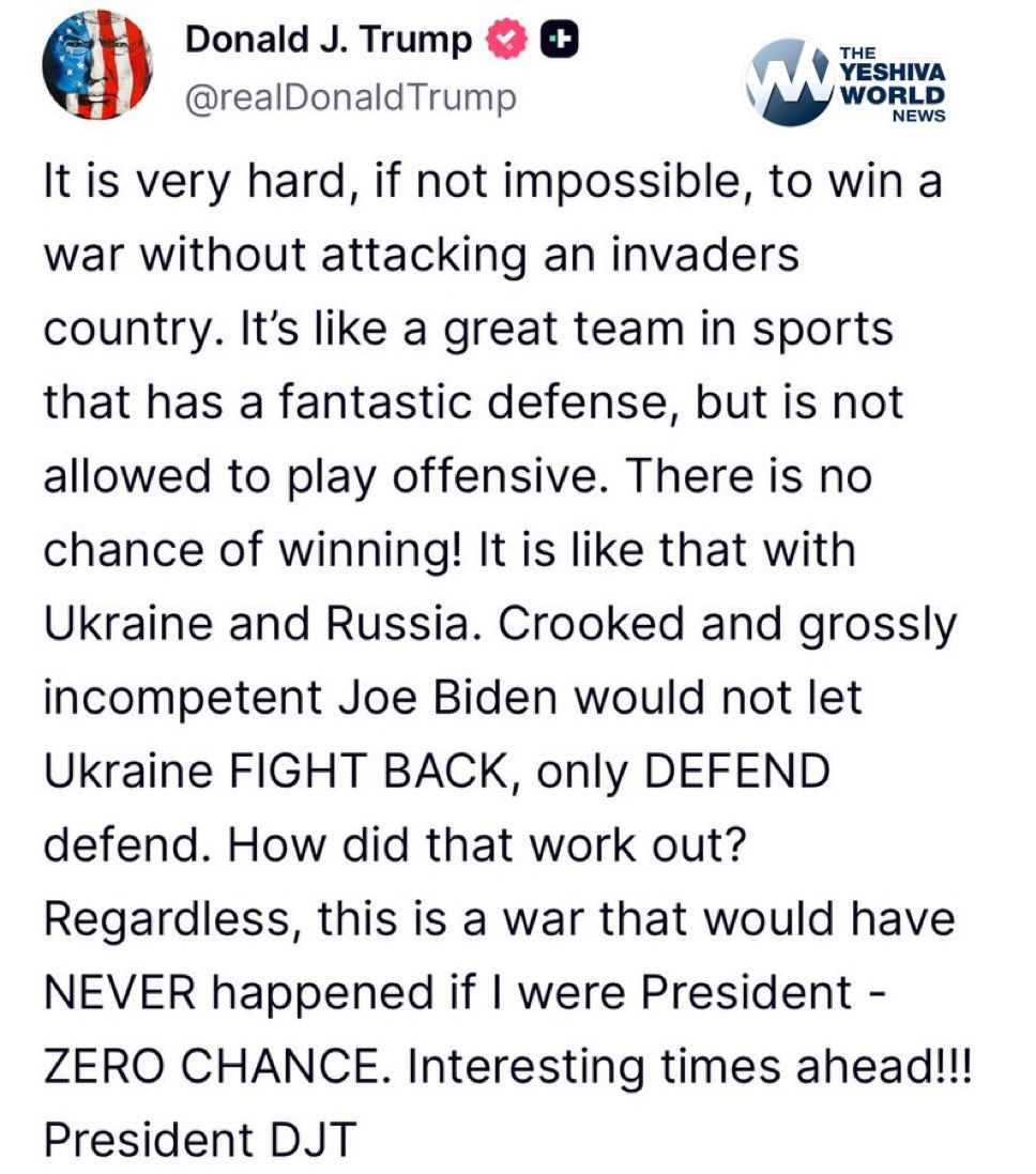 POTUS: “Joe Biden would not let Ukraine FIGHT BACK, only DEFEND defend. How did that work out?…”