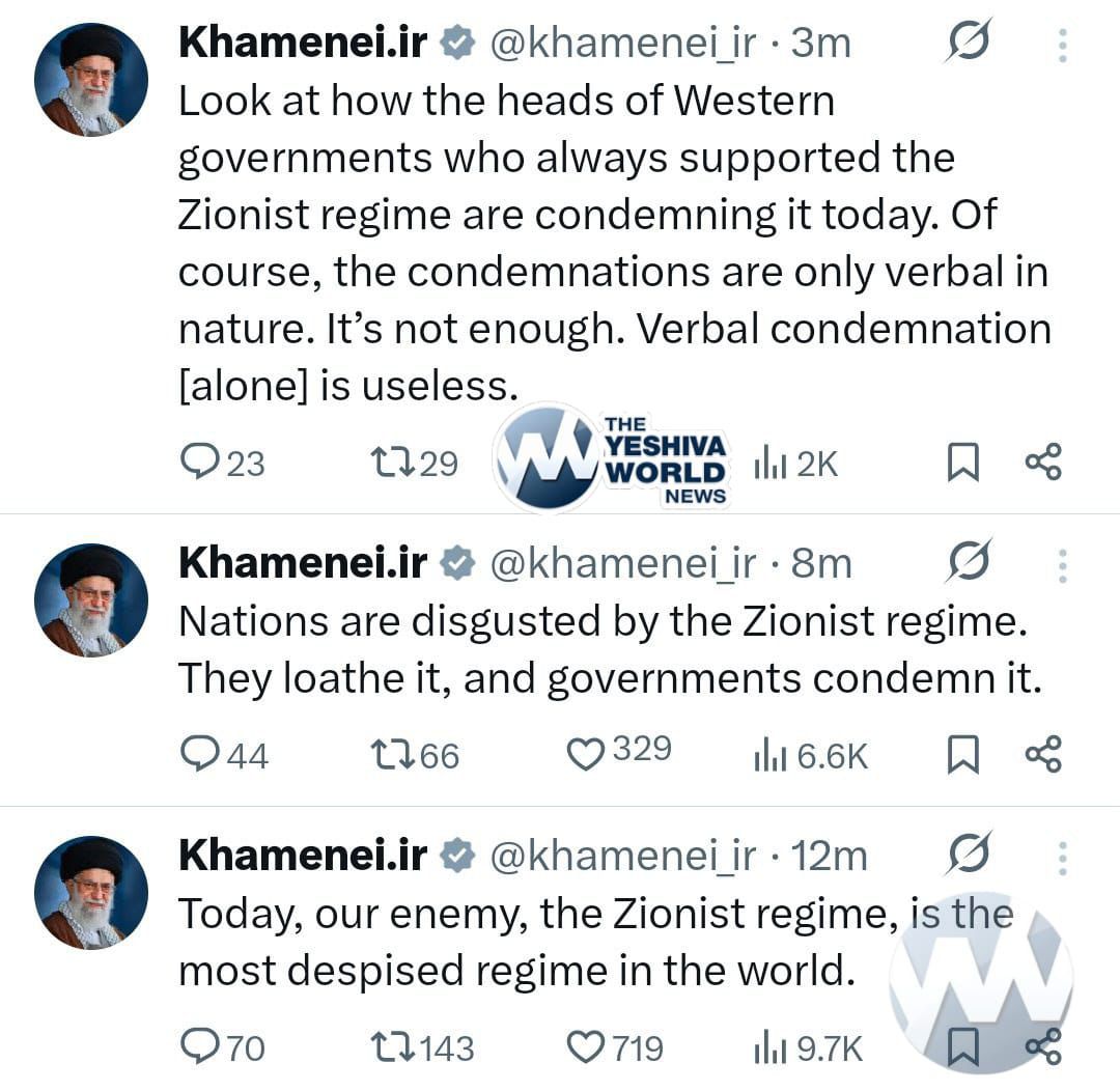 Iran’s Supreme Leader: ‘Zionist regime is most dedpised in world’