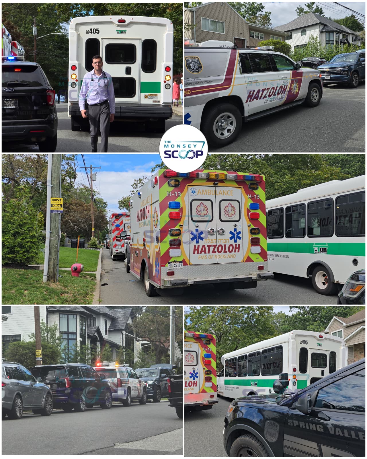 NISSIM IN SPRING VALLEY: A frightening incident unfolded on Dr. Frank Road when an emergency exit door on a TOR bus unexpectedly opened while driving, causing three children to fall out. Hatzoloh EMS and Spring Valley Police responded to the scene, and thankfully only minor injuries were reported. The three children were transported by Hatzoloh EMS to Hackensack Medical Center.