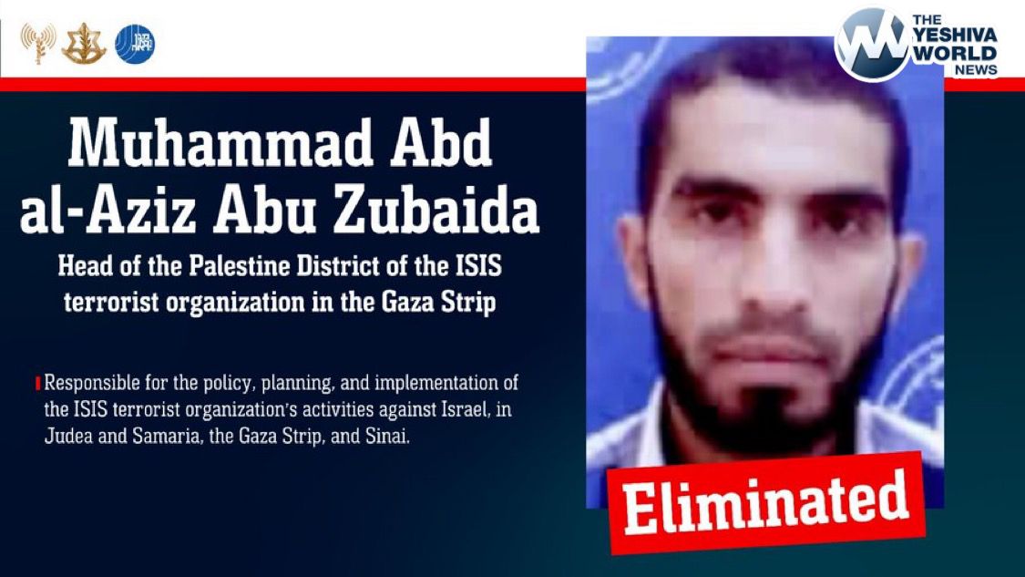 ELIMINATED: The IDF has killed Muhammad Abd al-Aziz Abu Zubaida, the highest-ranking ISIS leader in Gaza, who was responsible for setting policy, planning, and overseeing ISIS operations in Judea, Samaria, Gaza, and the Sinai Peninsula.