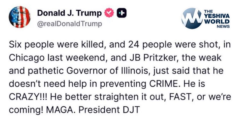 President Trump sends a direct message to JB Pritzker in regards to the out of control crime in Chicago: “Straighten it out, FAST, or we’re coming.”