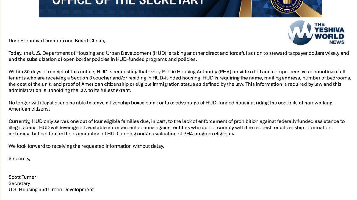 President Trump’s HUD Secretary, Scott Turner, is beginning the process of removing illegal immigrants from Section 8 housing, requiring all tenants to provide proof of citizenship.