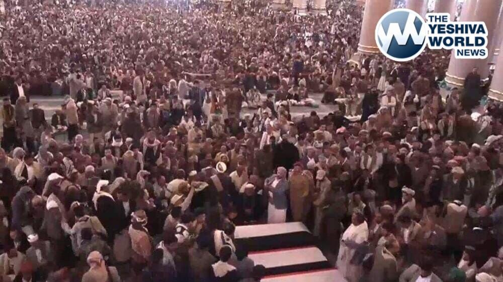 The Houthis in Yemen held a mass funeral in Saana on Monday morning for Prime Minister Ahmed A-Rahawi and almost all the members of the Houthi cabinet who were eliminated in the Israeli airstrike last week. Twelve coffins were seen placed side by side in a row as the masses shouted “Death to Israel!” several times during the funeral.