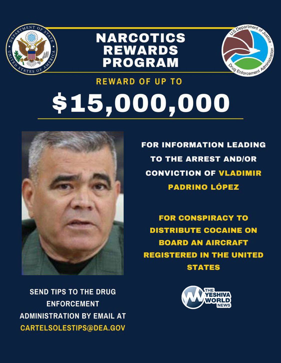 The US is now offering a $15 million reward for info leading to arrest of Venezuela’s Defense Minister Vladimir Padrino López.