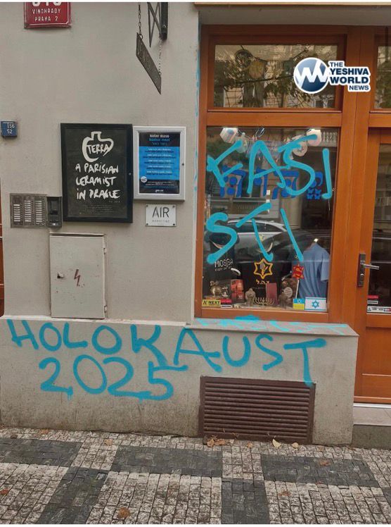 A man defaced the window and entrance of a Jewish kosher food and souvenir shop in Prague with antisemitic graffiti.