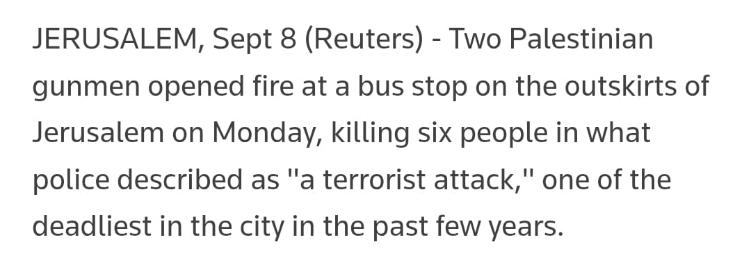 This is how Reuters covered this morning’s deadly shooting in Jerusalem, saying simply that “police described [it] as a ‘terrorist attack'”. Sickening.