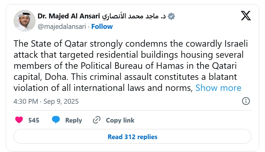 š Qatar “Strongly Condemns” the “Cowardly” IsraeliĀ Airstrike