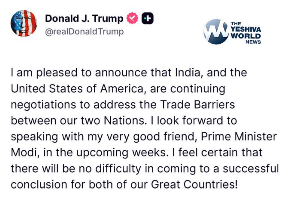 POTUS: “I am pleased to announce that India, and the United States of America, are continuing negotiations to address the Trade Barriers between our two Nations…”