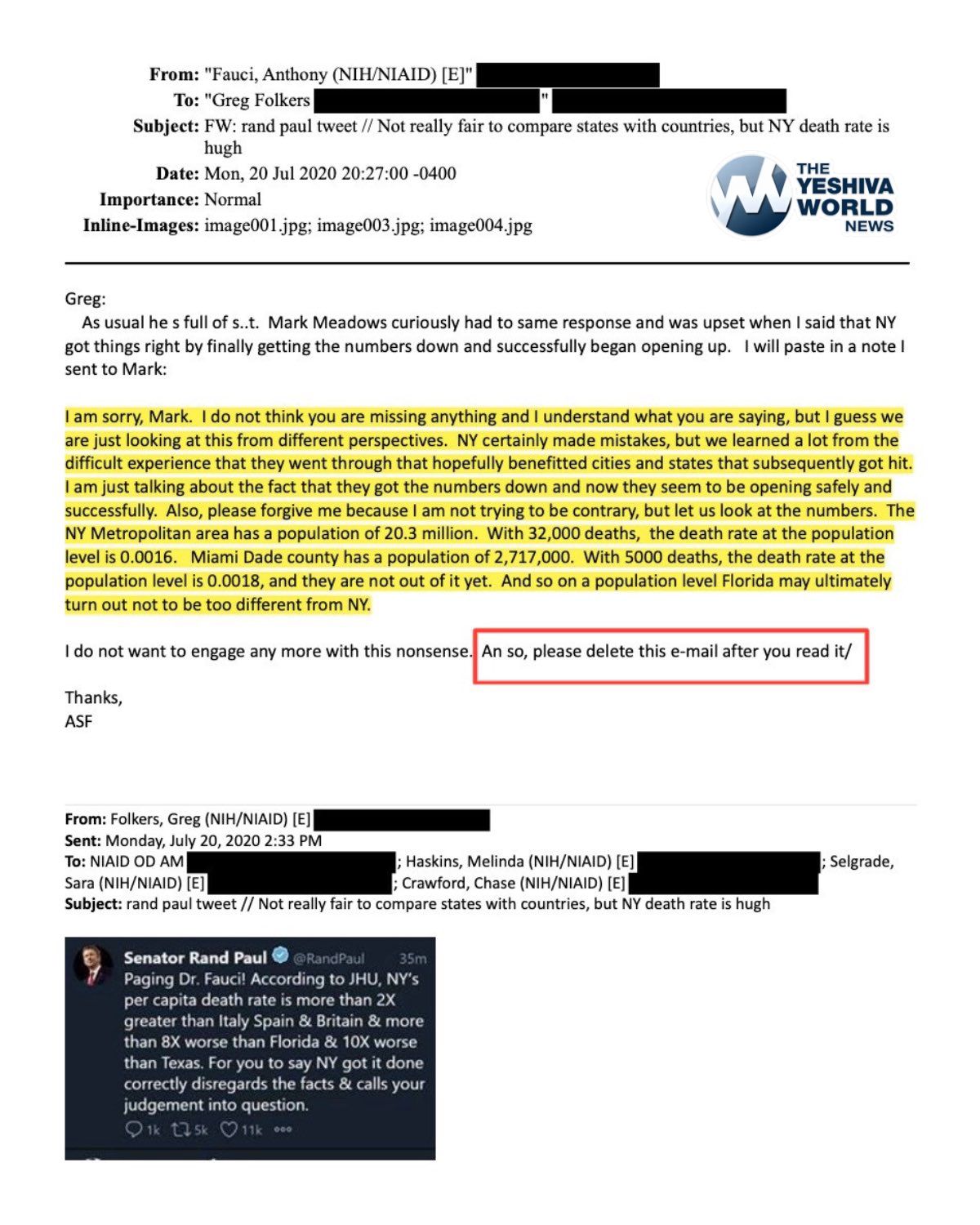 NEW: Newly released emails reveal Fauci instructed colleagues to “delete this after you read it,” dating back to 2020.