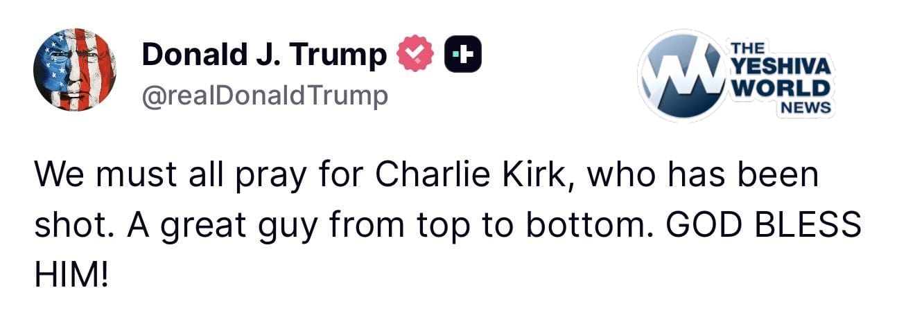 🚨 PRESIDENT TRUMP POSTS MESSAGE CALLING FOR PRAYERS FOR CHARLIE KIRK
