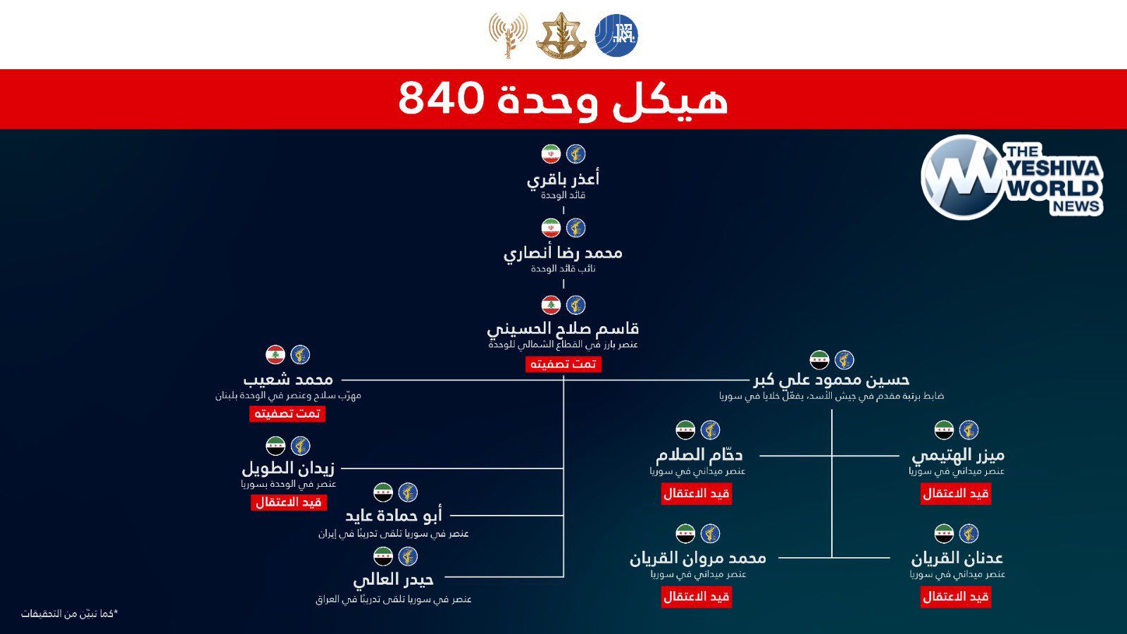 The IDF says several suspects recently detained in southern Syria were working for Iran’s Unit 840, a secret branch of the IRGC’s Quds Force, and had been directed to carry out attacks against Israel.