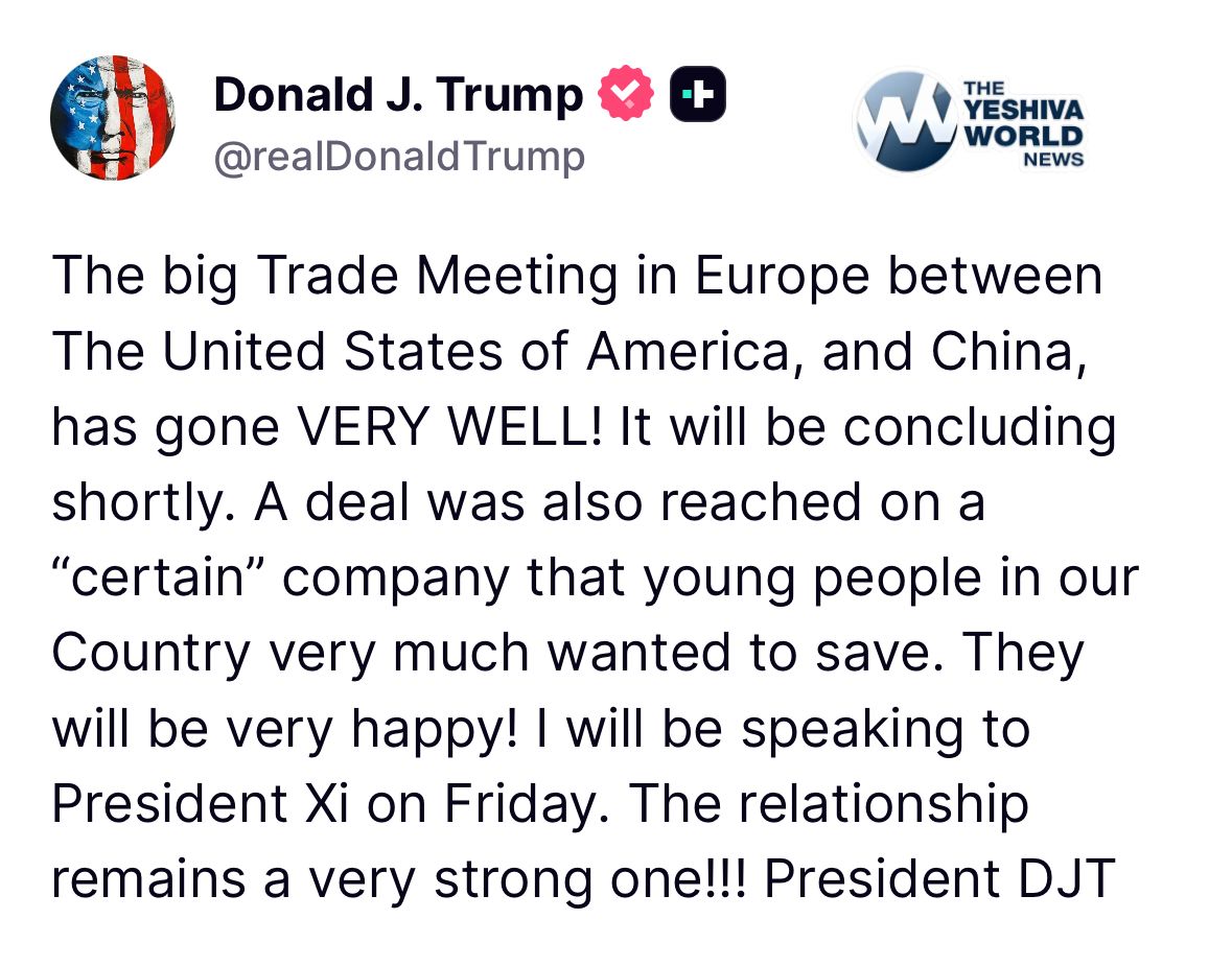 President Trump says the trade deal with China went VERY WELL, and he will be speaking with President Xi this Friday.