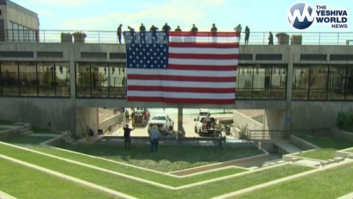 A massive American flag has been placed where Charlie Kirk was assassinated at Utah Valley University.