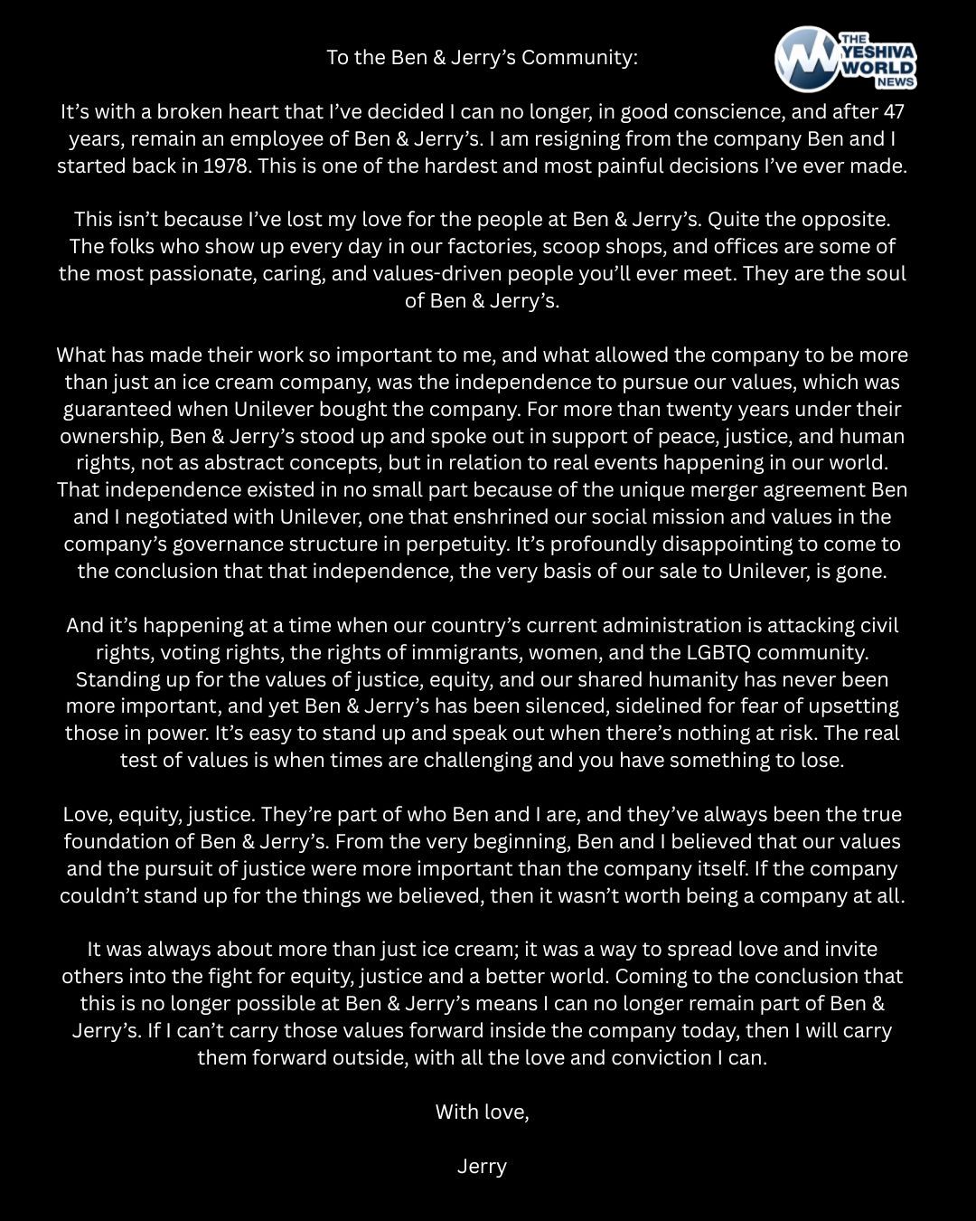 Jerry Greenfield, co-founder of Ben & Jerry’s, has resigned after 47 years, accusing parent company Unilever of suppressing the brand’s political activism.
