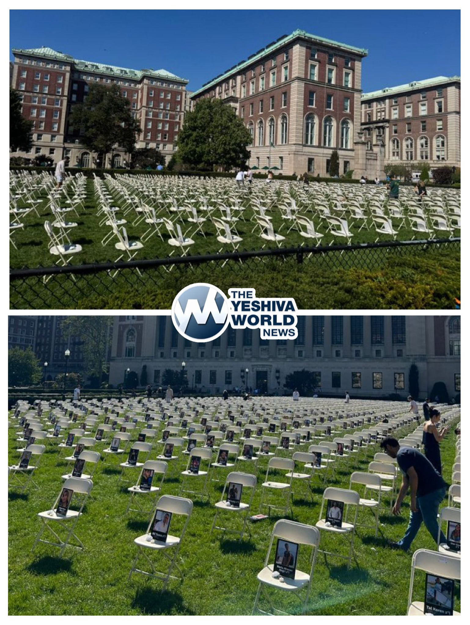 Today, on the second anniversary of the October 7 massacre, 1,200 chairs—each bearing a photo of a victim murdered that day—were placed at the center of Columbia University’s campus.