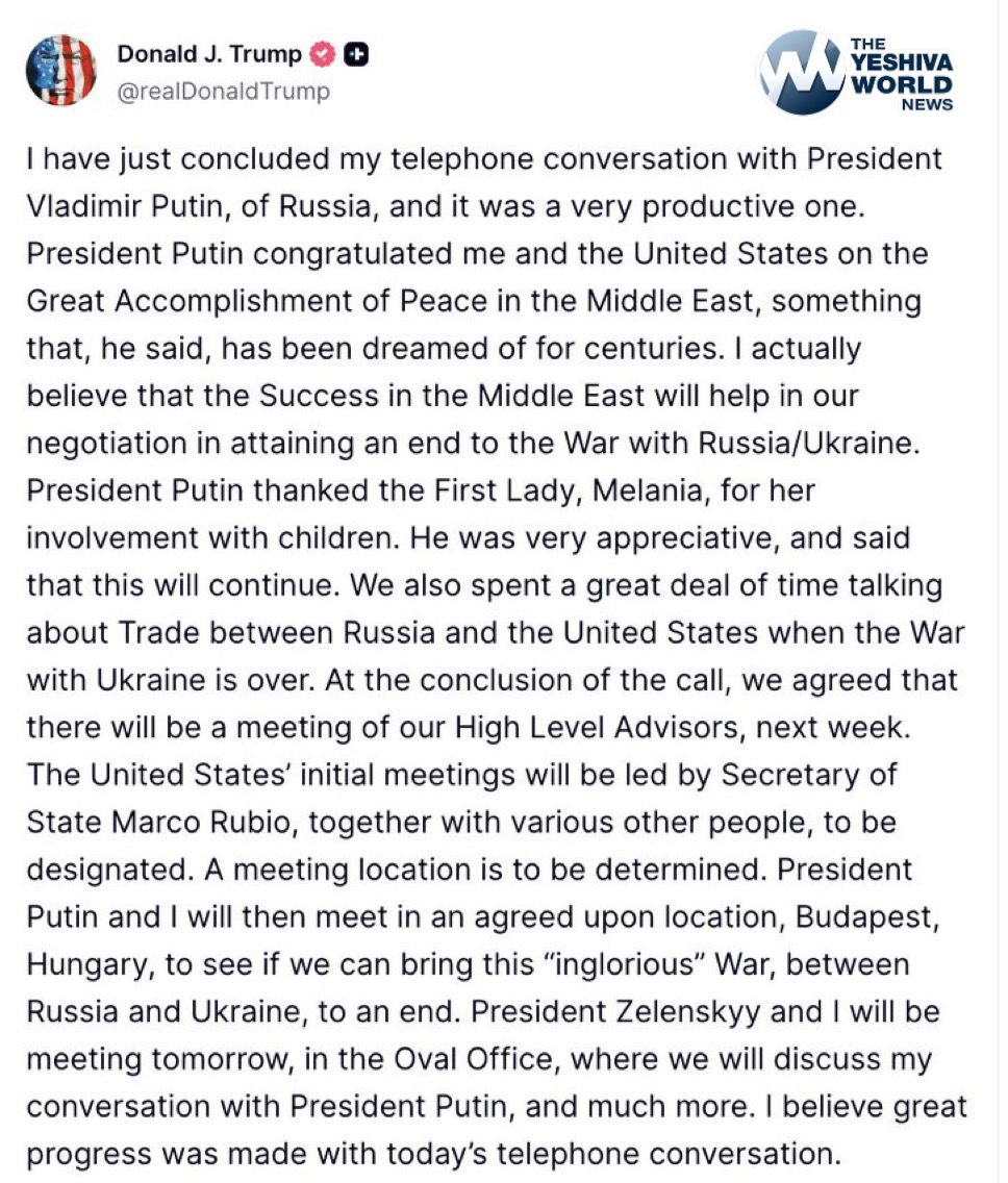 BREAKING: President Trump is set to meet Russian President Vladimir Putin in Budapest, Hungary.
