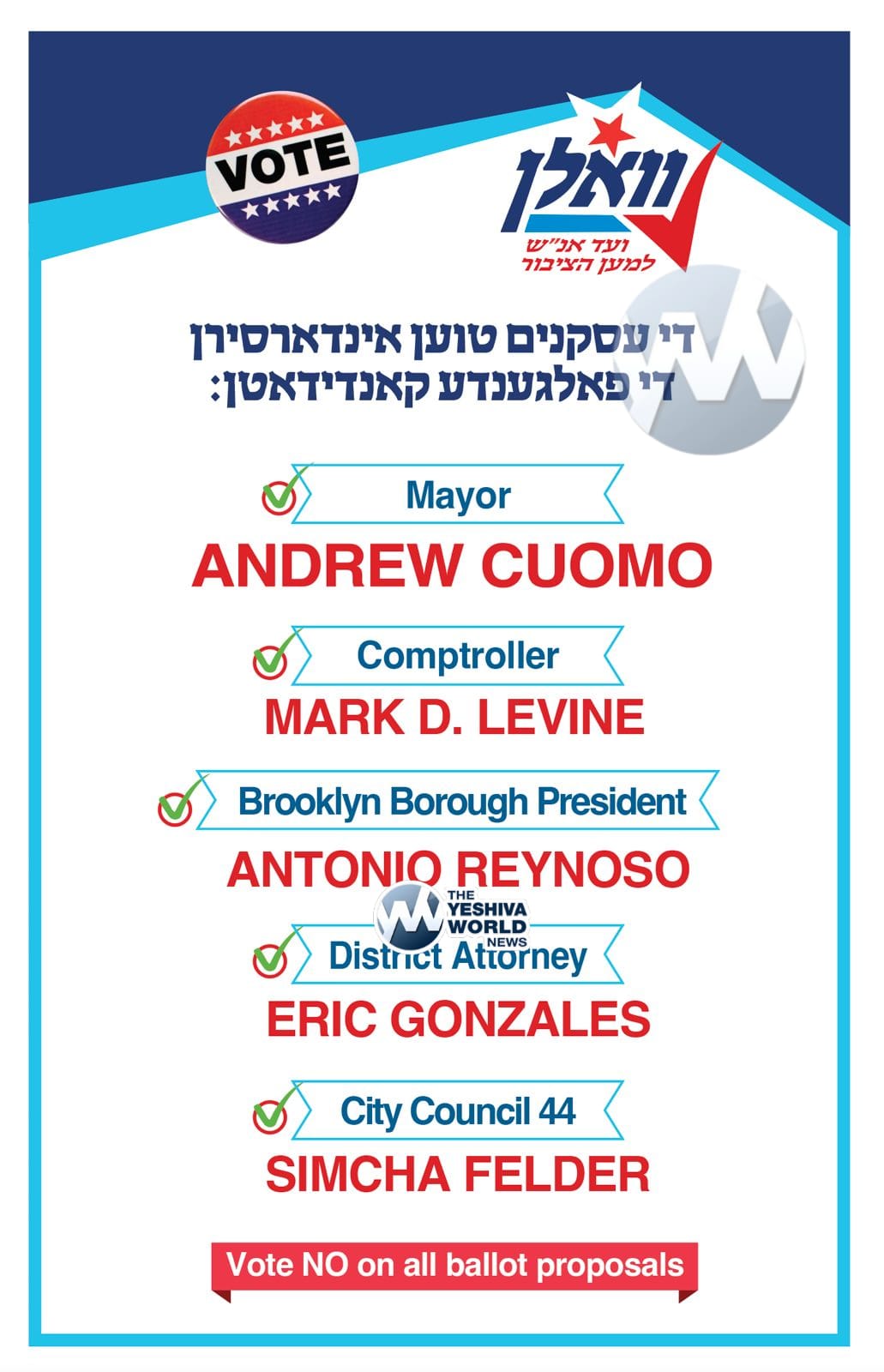 The Bobover Kehillah in Boro Park throws their support behind Andrew Cuomo for NYC Mayor.
