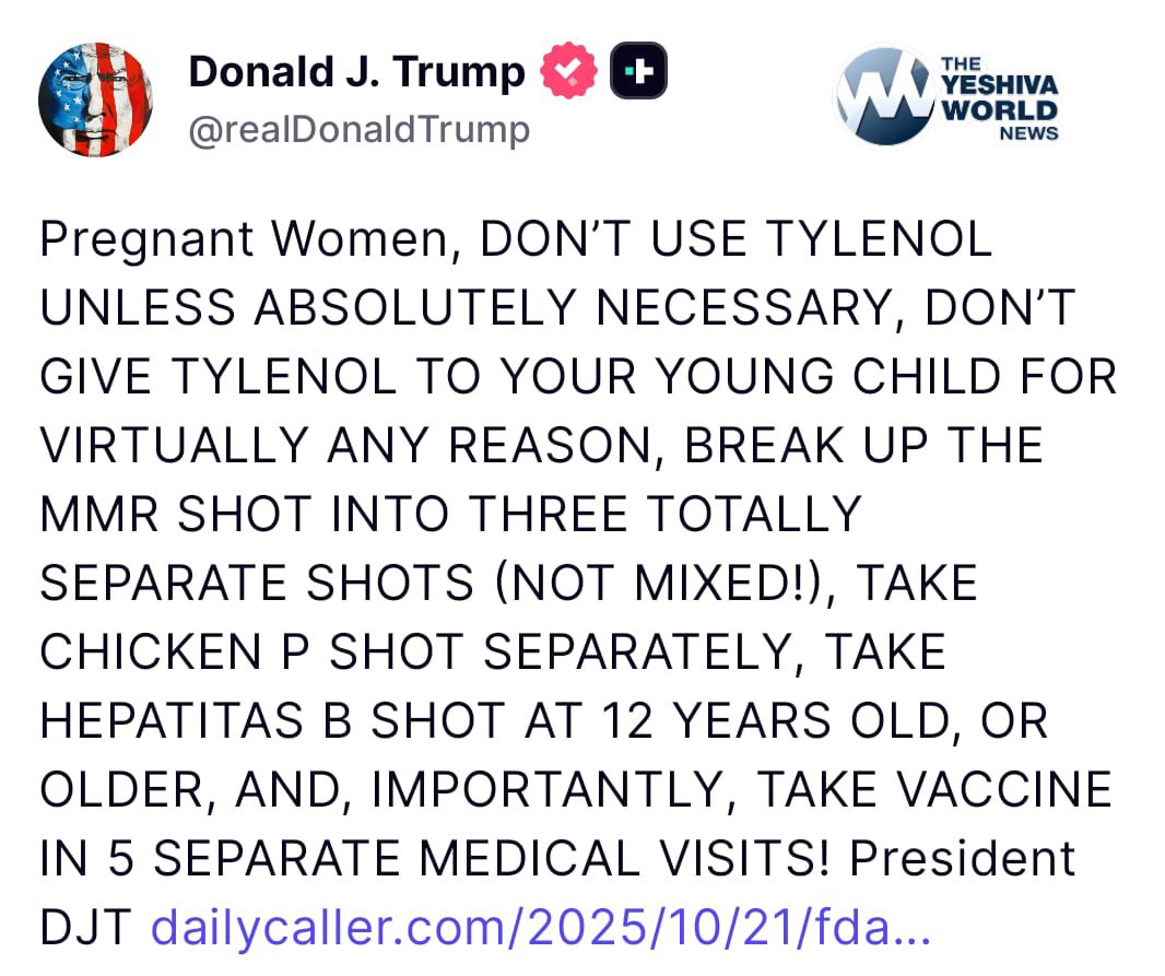 TRUMP: “Don’t use Tylenol, unless absolutely necessary, don’t give Tylenol to your young child for virtually any reason.”