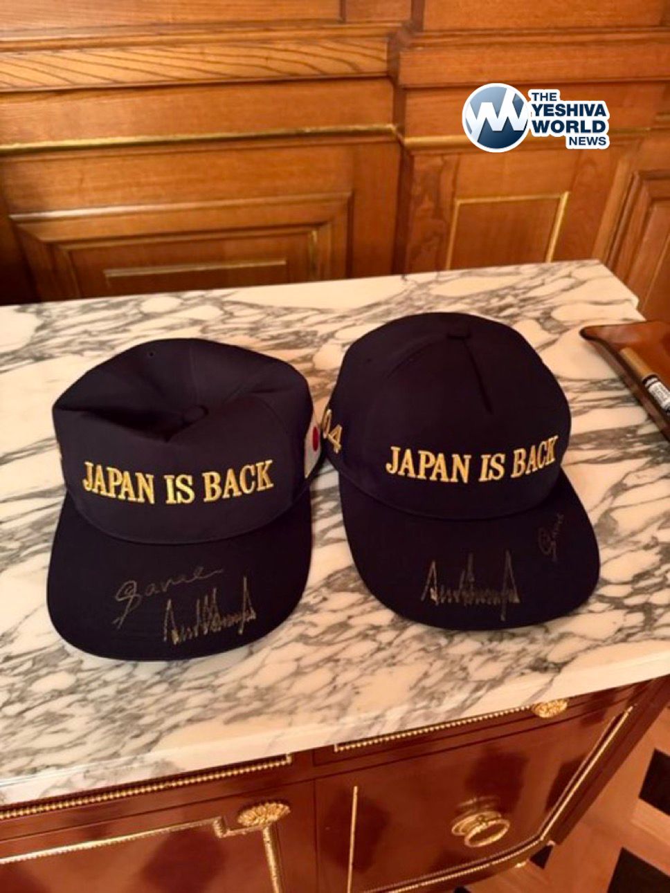 “JAPAN IS BACK” hats autographed by President Trump and Japanese Prime Minister Sanae Takaichi.