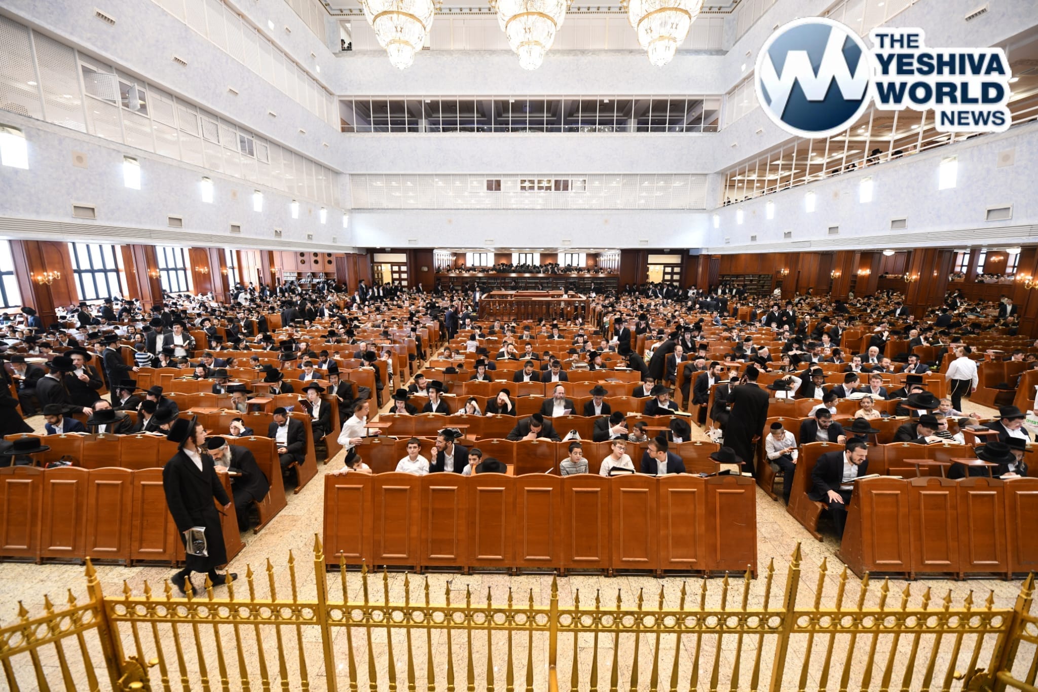 NOT WASTING A MINUTE: Litvish Yeshiva Bochrim pack the Belzer Bais Hamedrash as they needed a place to learn in Yerushalyim today while waiting for the massive rally to begin.
