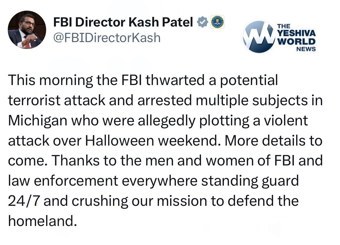 FBI Director Kash Patel announced that the FBI thwarted a potential terrorist attack in Michigan, arresting multiple subjects who were allegedly plotting a violent attack over Halloween weekend.