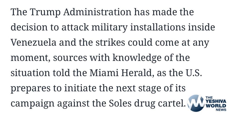 BREAKING: The Trump Administration has decided to strike military installations in Venezuela, with attacks possible at any moment. -Miami Herald.
