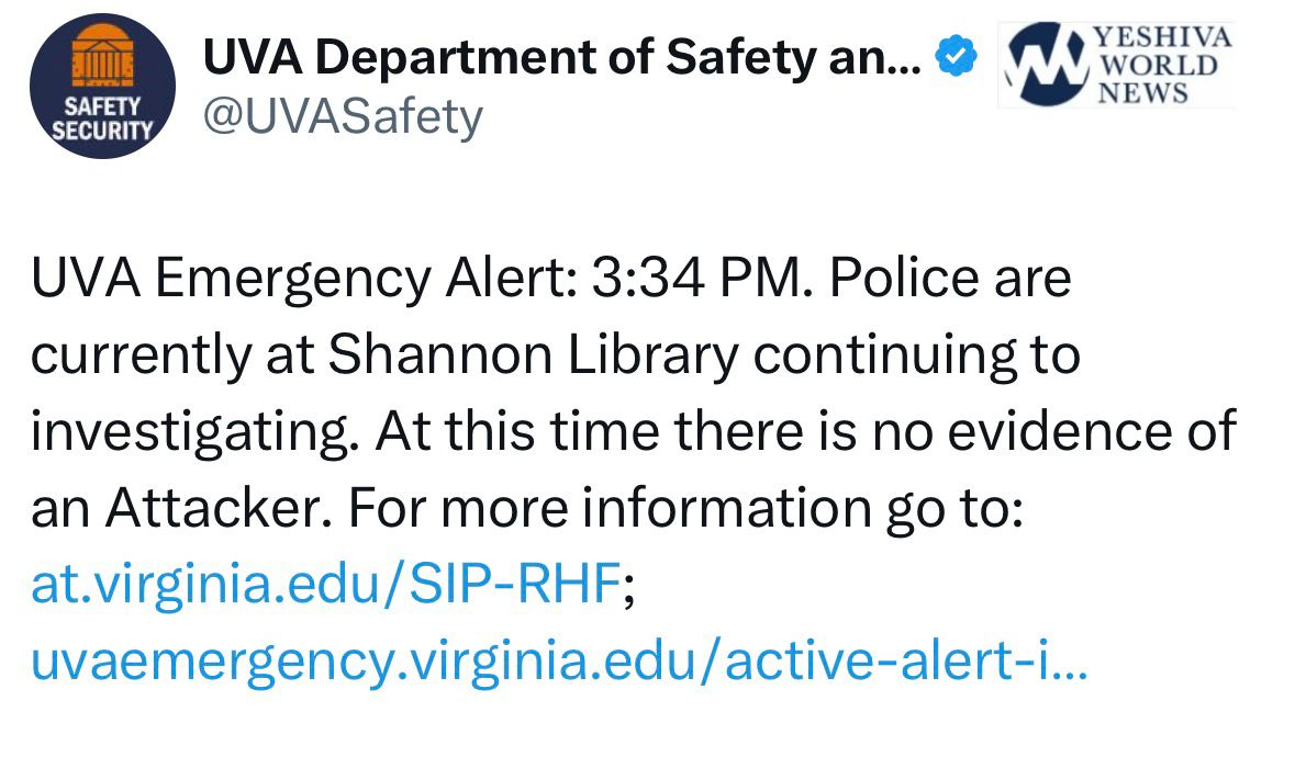 UPDATE: No evidence of an attacker at University of Virginia in Charlottesville.