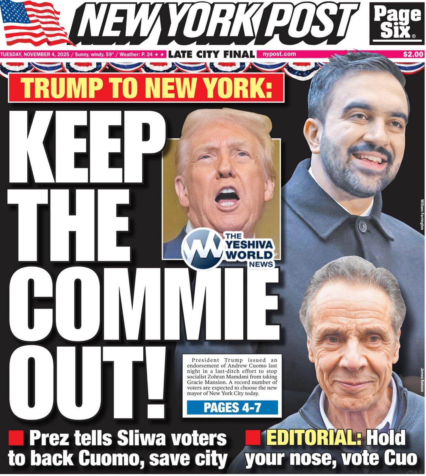 Front Cover of the NY Post on Election Day 2025