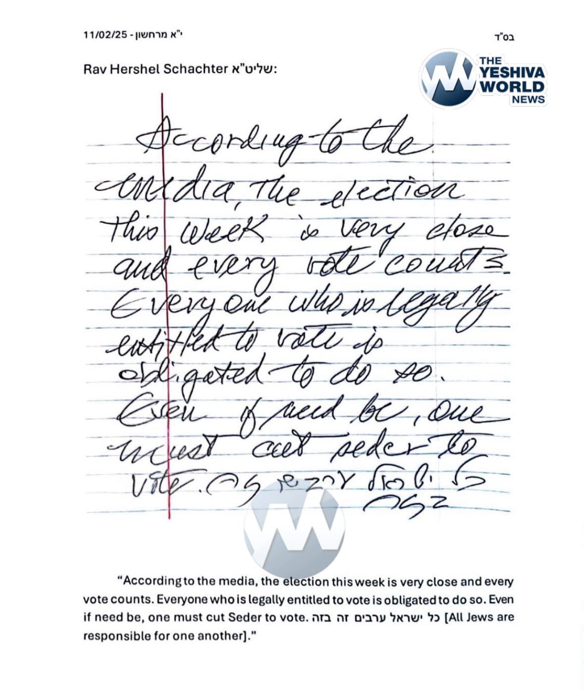 Rav Herschel Schachter, the Rosh Yeshiva of Yeshivas Rabbeinu Yitzchak Elchanan paskens that one “may cut Seder” to vote in the 2025 election.