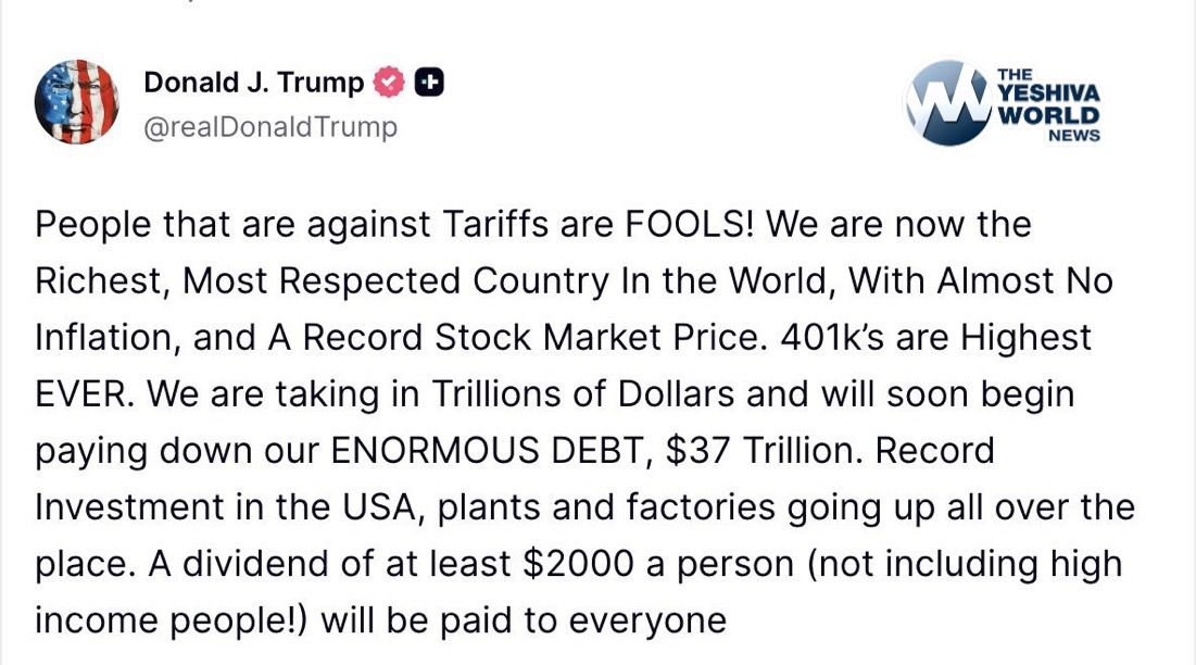 TRUMP: “A dividend of at least $2000 a person (not including high income people!) will be paid to everyone”