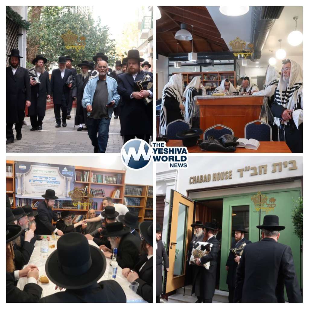 While on his current trip to Eretz Yisroel, the Satmar rebbe stopped for 24 hours in Athens, Greece. This morning, the Rebbe paid a visit to the Chabad Lubavitch Center in Athens, Greece, where he davened and received a warm welcome from the local community. He also toured the local mikvah.
