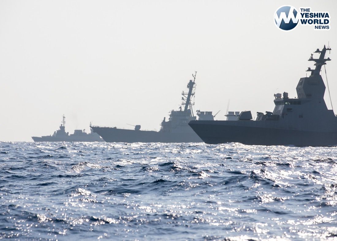 Guided-missile destroyer USS Mitscher (DDG 57) sails in between two Israeli Navy corvette ships during an exercise in the U.S. Central Command operating area, Nov. 13. The United States and Israel maintain strong maritime ties that promote regional security and stability.
