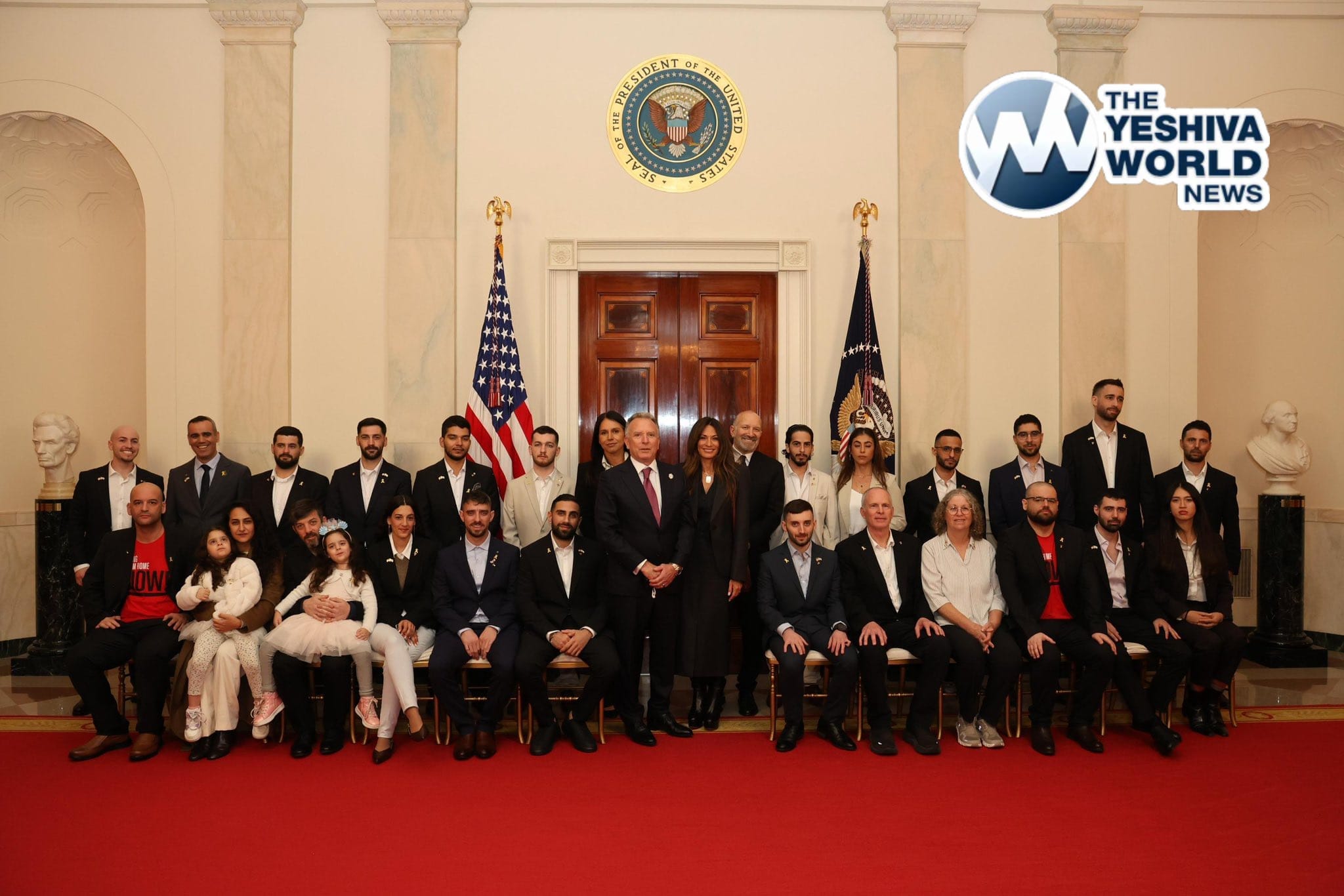 Special envoy Steve Witkoff with the released hostages that survived Hamas captivity. Moments before they meet President Trump