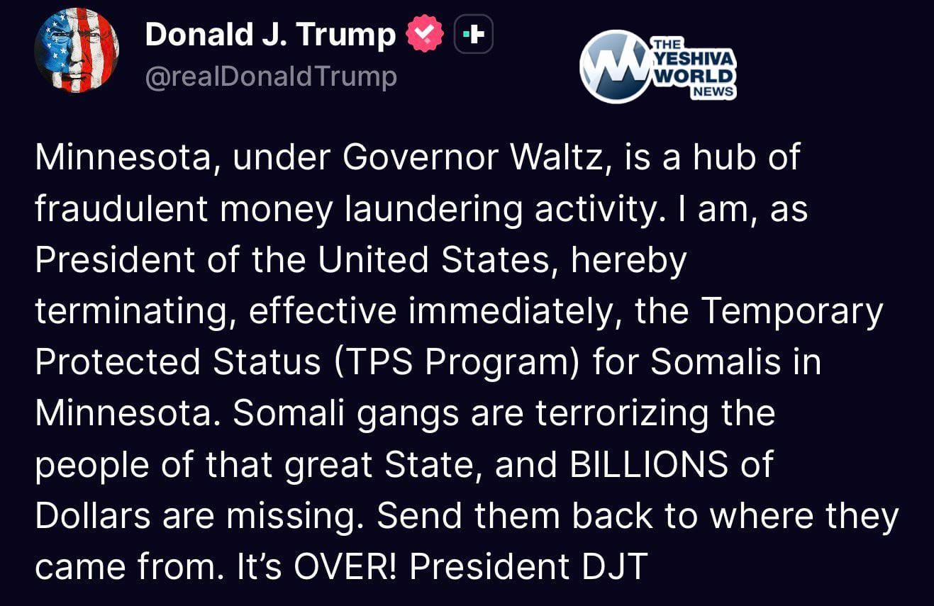 President Trump announced on Friday that he is terminating the temporary protected status for Somalis in Tim Walz’s Minnesota.