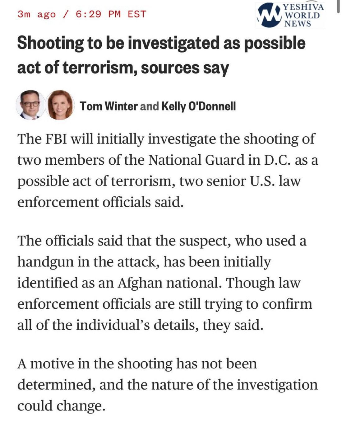 BREAKING: NBC News reports that the suspect in the National Guard shooting has been preliminarily identified by the FBI as an Afghan national.