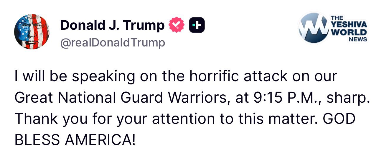 President Trump Will Speak to the Nation at 9:15 Regarding Today’s Shooting in D.C.