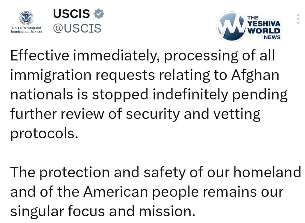 The USCIS officially announces they have halted all immigration processing for Afghan nationals effective immediately, pending a full review of security and vetting protocols.