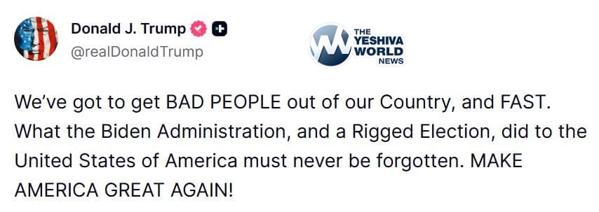 TRUMP: We’ve got to get BAD PEOPLE out of our Country, and FAST. What the Biden Administration, and a Rigged Election, did to the United States of America must never be forgotten.