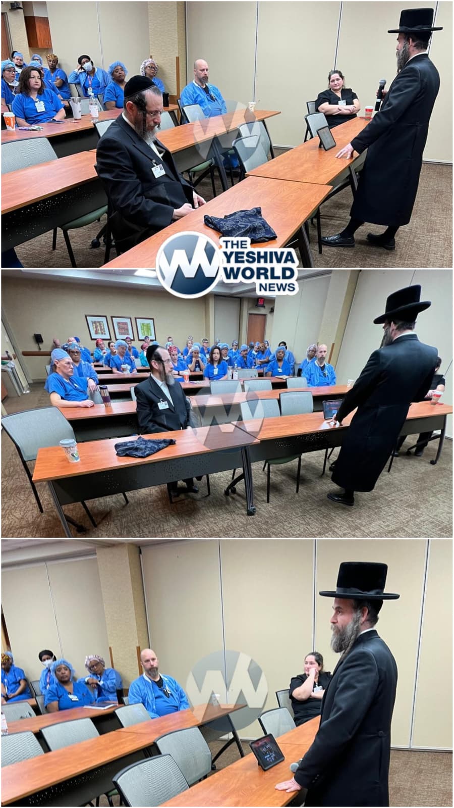 PHOTOS: Reb Meyer Hersh Berger of Chesed Shel Emes delivered a cultural sensitivity and competency presentation to the OR staff at Orange Regional Hospital in Middletown, arranged at the request of Kiryas Joel Hatzolah.