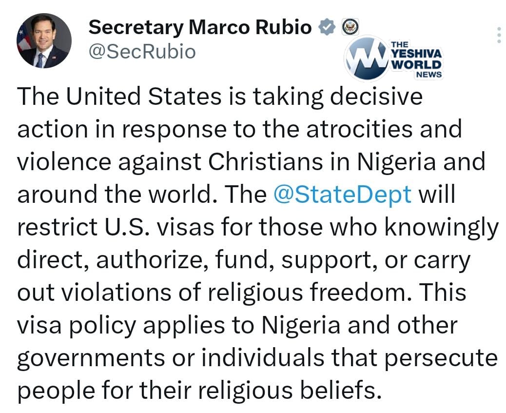 Marco Rubio: The U.S. is taking decisive action in response to violence against Christians in Nigeria and elsewhere.