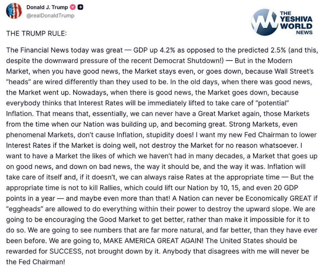 TRUMP: Anybody that disagrees with me will never be the Fed Chairman!