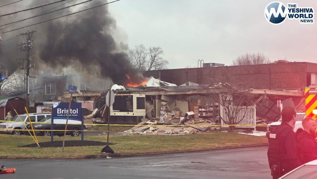 SHOCKING IMAGE: Massive damage seen at the Bristol Health and Rehab Center (nursing home) in Bristol, Pennsylvania following an apparent gas explosion. There are reportedly people trapped inside. There is a fire burning at the facility as well. Rescues underway.