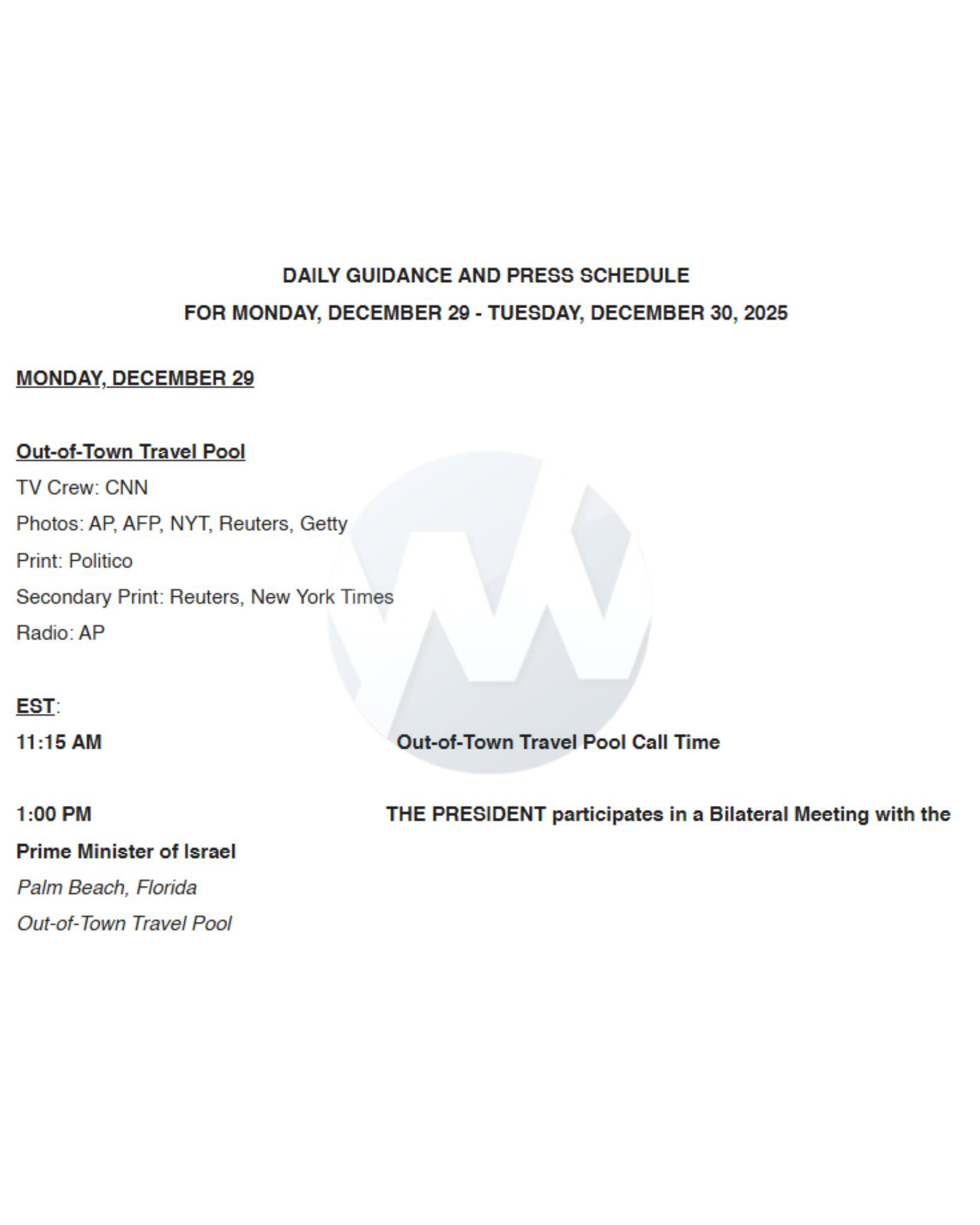 President Trump is set to meet Israeli Prime Minister Benjamin Netanyahu tomorrow at 1 p.m. in Palm Beach, Florida.