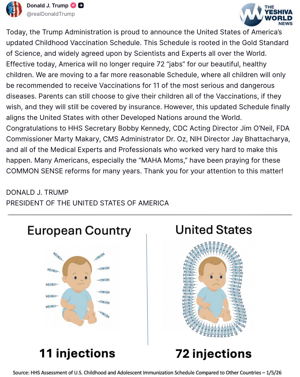 President Trump Announces Updated Childhood Vaccination Schedule