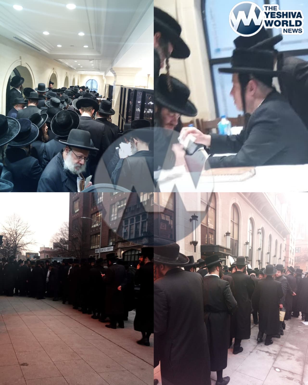 Hundreds wait on line as Philanthropist Yoeli Landau distributes large amounts of Tzedakah ahead of the Chasunah of his son.