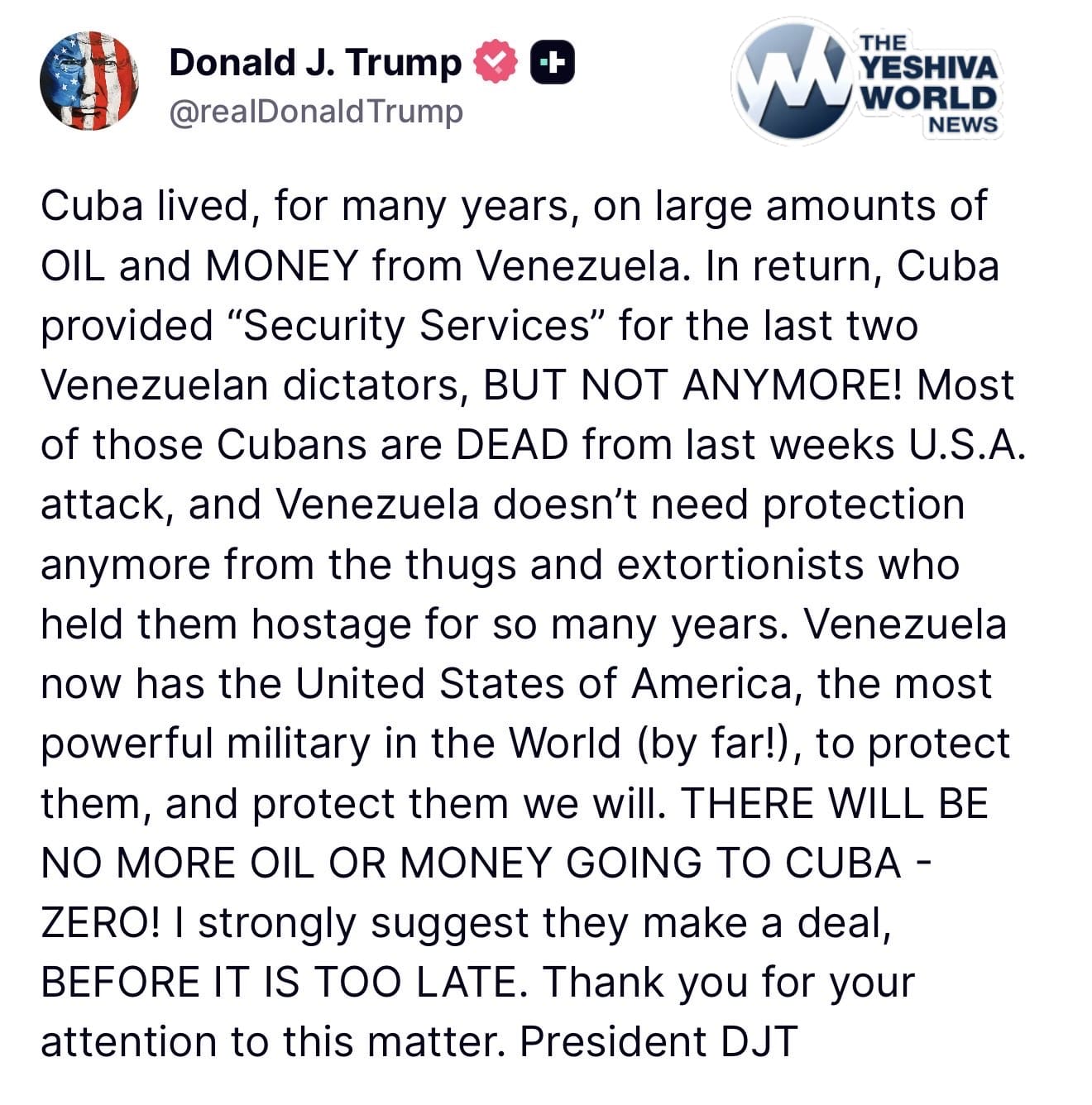 President Trump just sent a warning to Cuba “I strongly suggest you make a deal”.