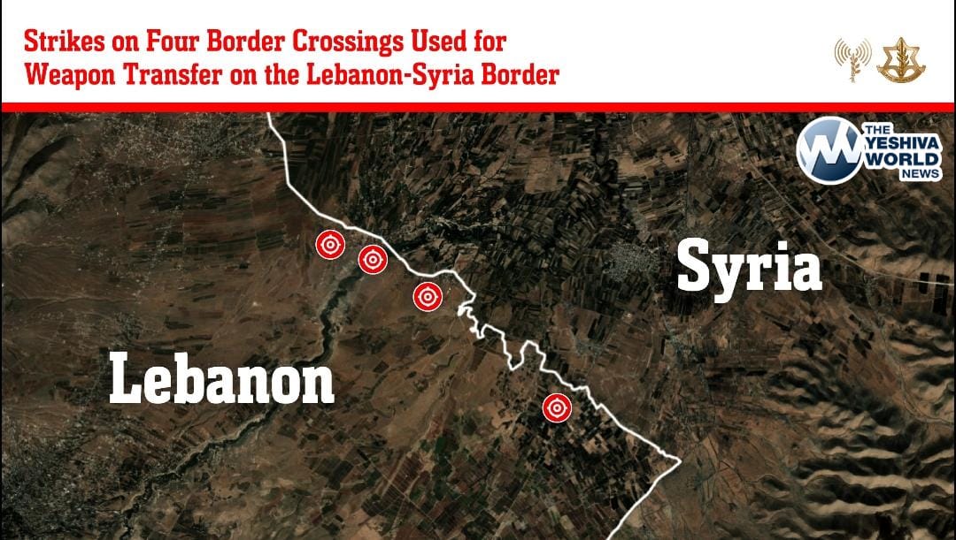 The IDF confirms striking four crossings on the Syria–Lebanon border that were used by Hezbollah for weapons smuggling.