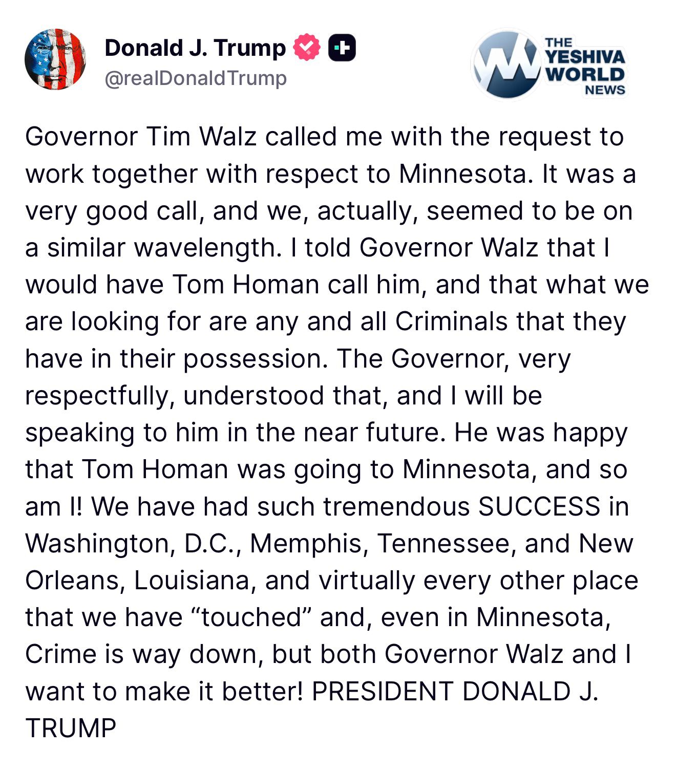 TRUMP HOLDS CALL WITH TIM WALZ. SAID IT WAS “VERY GOOD”