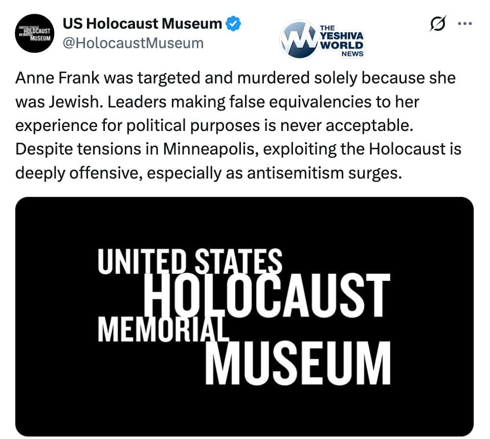 The US Holocaust Museum has issued a statement condemning Minnesota Gov. Tim Walz of comparing the plight of immigrants in his state to that of Anne Frank, who was murdered by the Nazis.