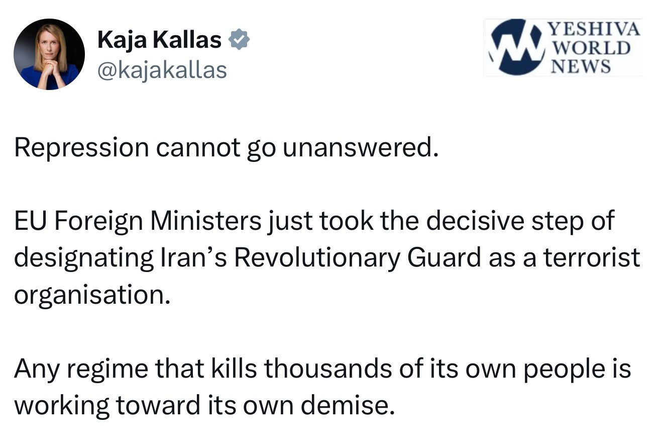 BREAKING: The EU Foreign Ministers have officially designated Iran’s Revolutionary Guard Corps (IRGC) as a terrorist organization.